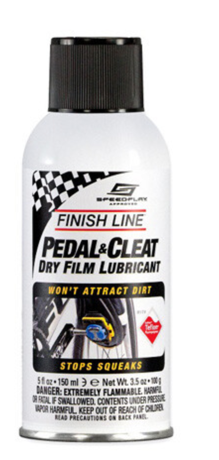 Clipless pedals require regular maintenance for optimum performance and long component life. Finish Line Pedal & Cleat Lubricant sprays on to fully and evenly coat all frictional surfaces and is engineered to ensure fast engagements and smooth releases every time. Thanks to a 100% dry-to-the-touch micro-thin coating, there is no oily, greasy film or unwanted stain when you walk around in your shoes.