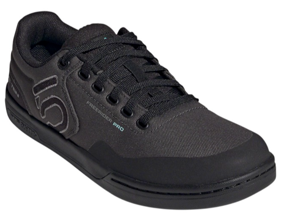 All-day comfort on and off the mountain. The Five Ten Freerider Pro flat pedal biking shoes provide grip and durability for all-mountain and enduro riding. An impact-resistant toe box complements the medium-stiff build for a responsive ride. The signature sticky rubber and purpose-built tread pattern keep your feet firmly planted on your pedals. The shoes have a casual look for times off the bike. Sustainably crafed using PRIMEBLUE technology