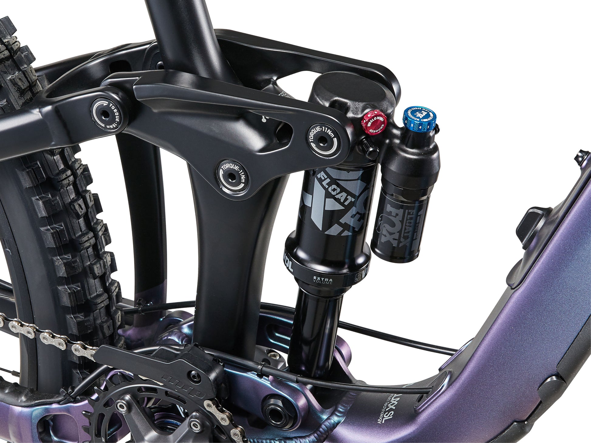 Developed and tested under the extreme demands of Enduro World Series racing, the Maestro rear suspension system delivers 160mm of smooth, active travel for maximum traction and control. A trunnion-mount rear shock with a longer 62.5mm stroke (up from 60mm on the previous generation) improves small-bump sensitivity and big-hit performance. The Advanced Forged Composite upper rocker arm increases stiffness while reducing overall weight for precise handling at speed.