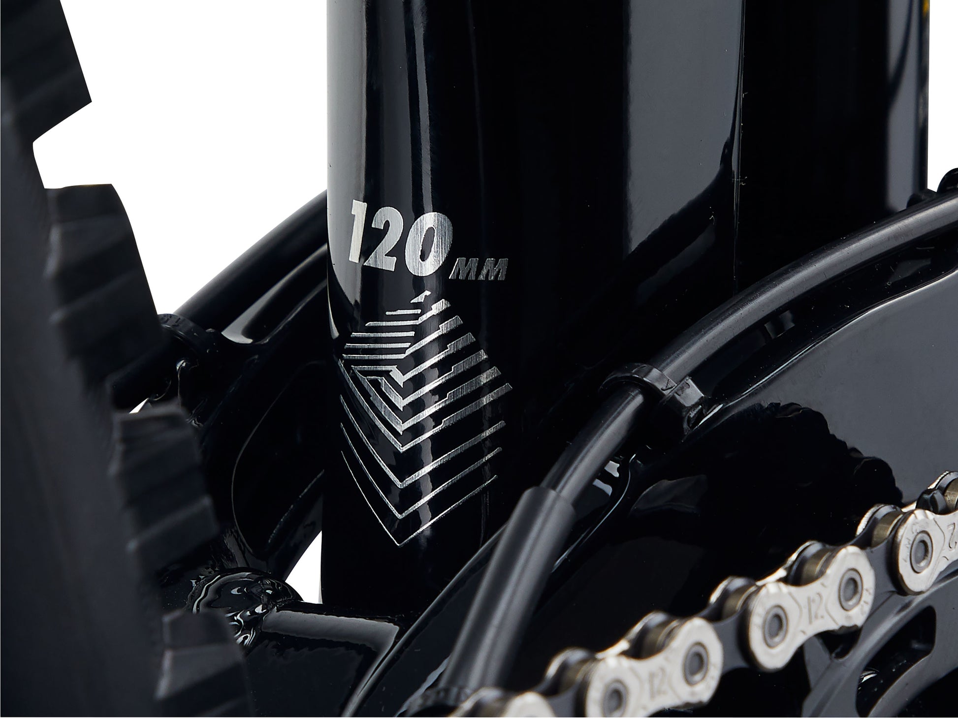 The Advanced-grade composite frame features a longer reach and steeper seat tube angle for modern trail riding. Maestro rear suspension offers 120mm of travel, paired with a 130mm front fork for balanced, controlled performance.