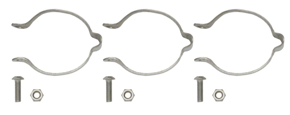 The Problem Solvers Clamp-On Cable Guides are for clamping on the rear brake cable housing on your frame when the frame doesn't have provisions for holding a full-length brake cable housing. You get 3 stainless-steel clamps and the nuts and bolts for them.